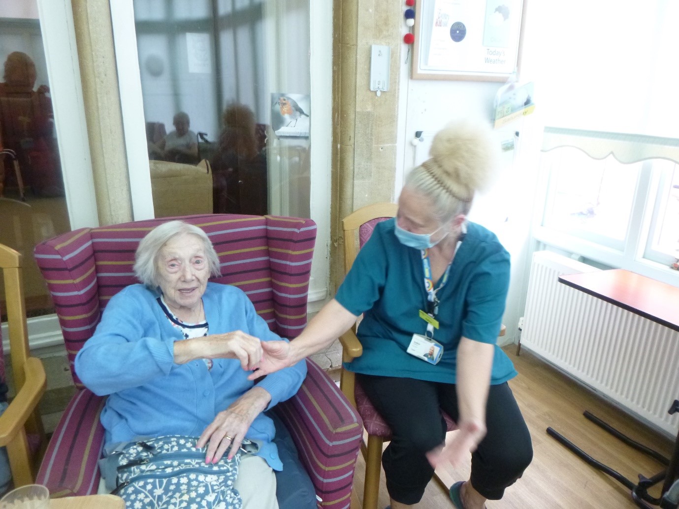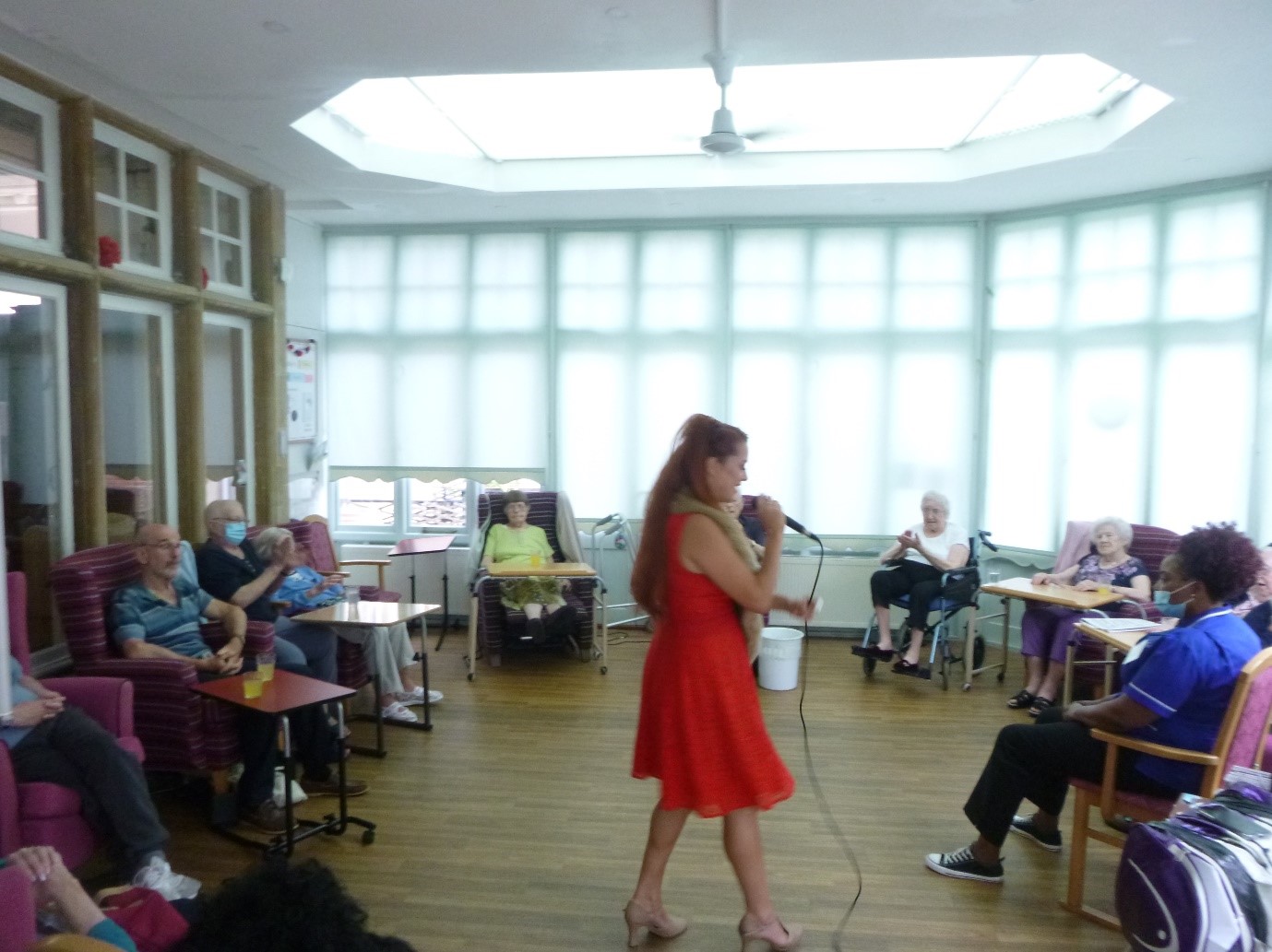 This week we had the pleasure of being joined by Carla who sang some fabulous country and wartime songs for the residents. She chatted with everyone after the performance and each resident had a photo for their personal photo album. It was lovely to see the residents reminiscing.