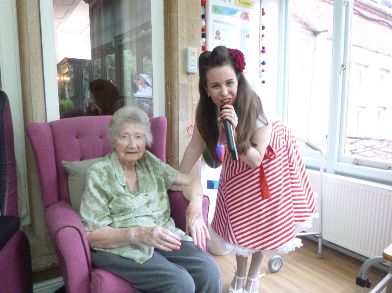 Tupwood Gate Nursing Home were delighted yesterday to welcome back Kate, an entertainer who performs songs from the 1940s, 50s and 60s. Kate first visited Tupwood at the beginning of the year and she went down so well with the residents that she was immediately re-booked. Once again she put on a wonderful performance and the residents had great fun singing and clapping along to the songs.