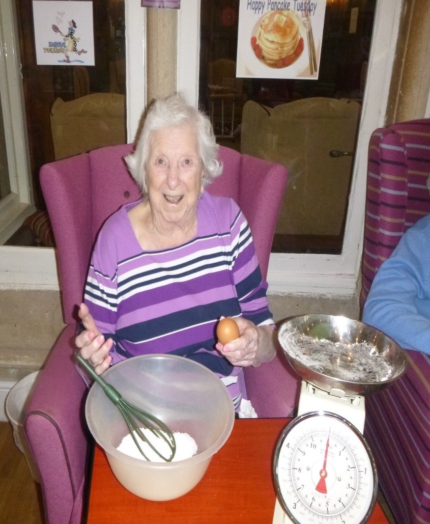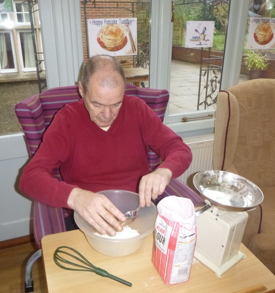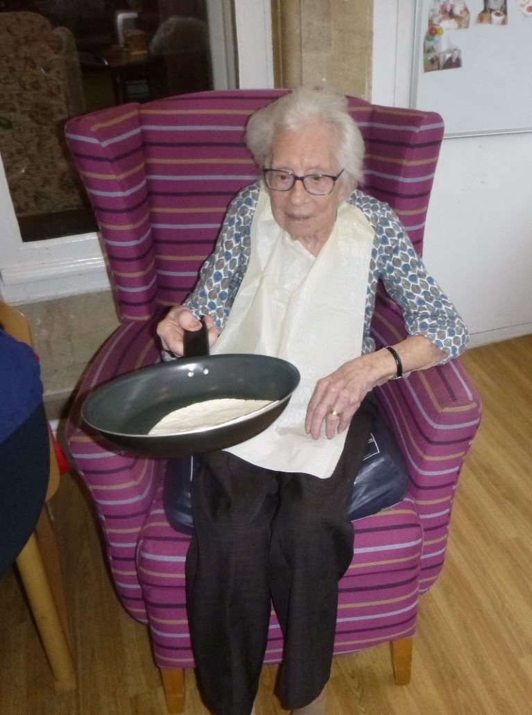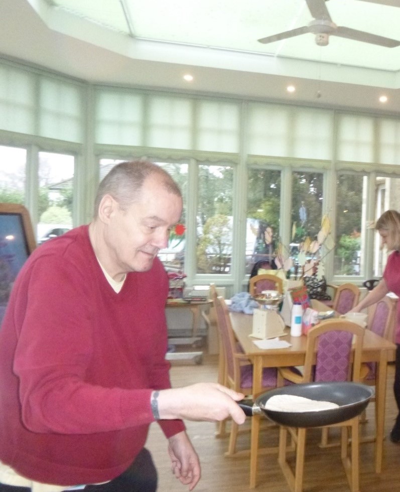 This week the residents at Tupwood Gate had a great time making pancakes. They used the baking skills that haven’t been used for a while, like breaking an egg, talked and remembering teaching their children to make pancakes, and discussed their favourite toppings. They also had a pancake tossing competition!