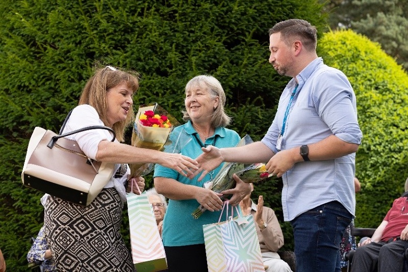 There were also presentations for two staff members in recognition of their long service at Tabley. Joanne Mainwaring, activity co-ordinator, and Jayne Roberts, Health Care Assistant, have worked at the home for 30 years! James O’Neil, the operations director for the region, presented both with a gift to thank them for their hard work over the years.