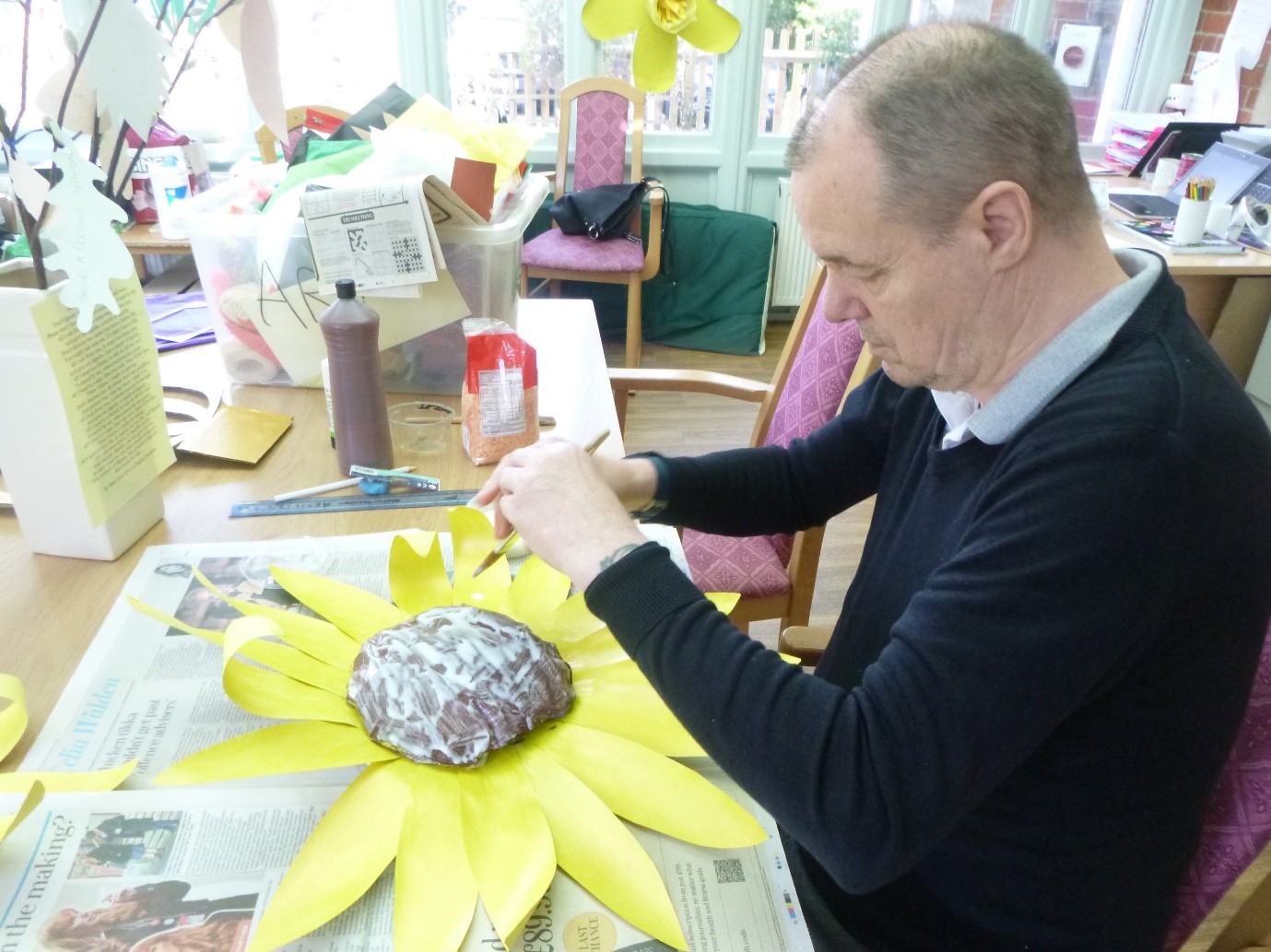 Residents at Tupwood Gate have taken the opportunity to add a touch of colour to the activities area. They made these sunflowers to display in the conservatory using lentils to give the appearance of seeds. Related content Queen's Jubilee Crafts Indoor gardening activities Preparing for Spring at Tupwood Gate Nursing Home Share this article Share this Post on Facebook Share this Post via Email Share this Post on Linked In